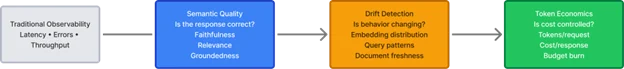 An AI service can process a request with perfect latency, consume standard memory, and return an HTTP 200 OK — while failing the user completely. It might hallucinate a policy, retrieve irrelevant context, or deliver toxic advice. The system is healthy; the application is broken.